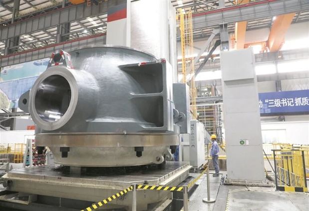 10月14日上午,在哈尔滨电机厂(镇江)有限责任公司(以下简称“哈电镇江公司”)的车间里,工人们正在精镗扎拉球阀。这个直径超5米、重量达240吨的“巨无霸”,作为全球单机容量最大的冲击式机组核心部件,代表了同类产品的顶尖水平。