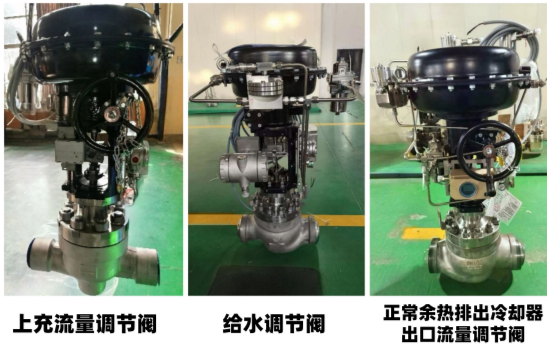 在“玲龙一号”工程中,我司提供了非能动余热排出系统控制阀、稳压器喷雾阀、稳压器喷雾管线针型阀、主给水调节阀、旁路给水调节阀、小流量给水调节阀、正常余热排出冷却器出口流量调节阀、正常余热排出冷却器旁路流量调节阀、上充流量调节阀、闭环调节阀、带执行机构调节阀、核岛辅助系统调节阀、减压阀、常规岛调节阀和疏水阀等多款核心控制阀。