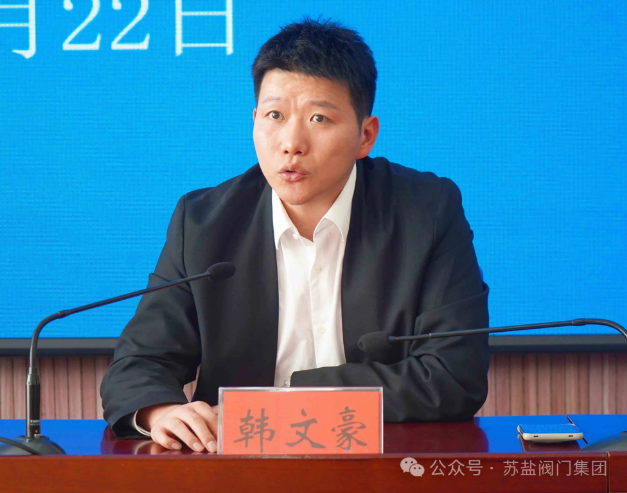 公司总经理韩文豪在致辞中表示,苏盐阀门不仅将为冠名班提供全方位的支持——选派技术骨干担任企业导师,把行业前沿技术、实际生产案例融入教学过程;还将开放公司实训基地,为学生提供真实的生产场景实践机会,助力学生在学习期间就能积累岗位经验、提升实操能力。表现优异的学员毕业后将直接进入公司的相关岗位,真正实现个人成长与企业发展的同频共振。他勉励冠名班学员要“沉下心”学技能,真正练就一身过硬本领。要“带着思考”学实践,培养解决实际问题的能力。要“心怀责任”学成长,以过硬的技能、踏实的作风,成为行业里的“能工巧匠”,为社会发展贡献自己的力量。