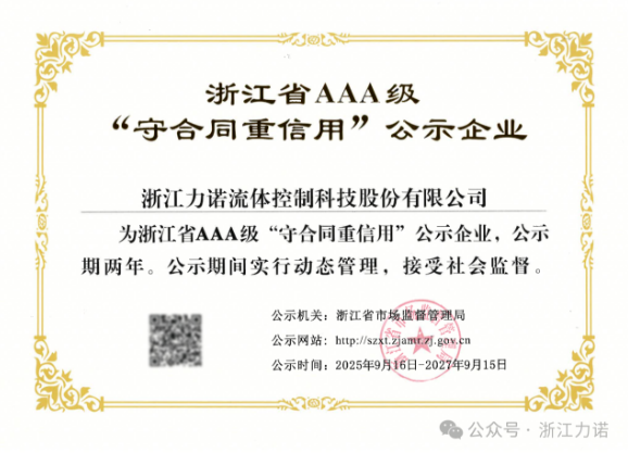 技术创新是企业持续发展的引擎,商业信誉则是行稳致远的基石。浙江力诺表示,此次两项重要资质的复核通过,既是激励,更是责任。公司将以此为契机,继续秉承服务理念,带领全体力诺人携手并进,依托科技进步,在控制阀领域不断探索和努力,为打造全球流体控制领域值得信赖的品牌、推动中国制造业高质量发展持续贡献力量。