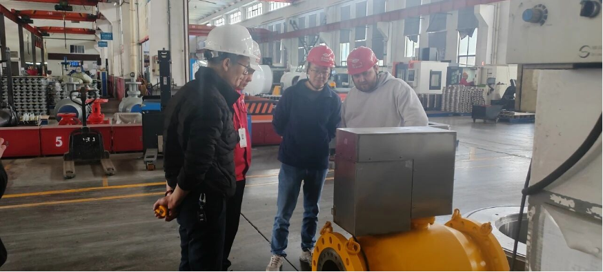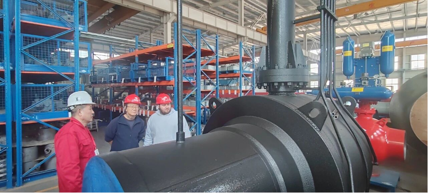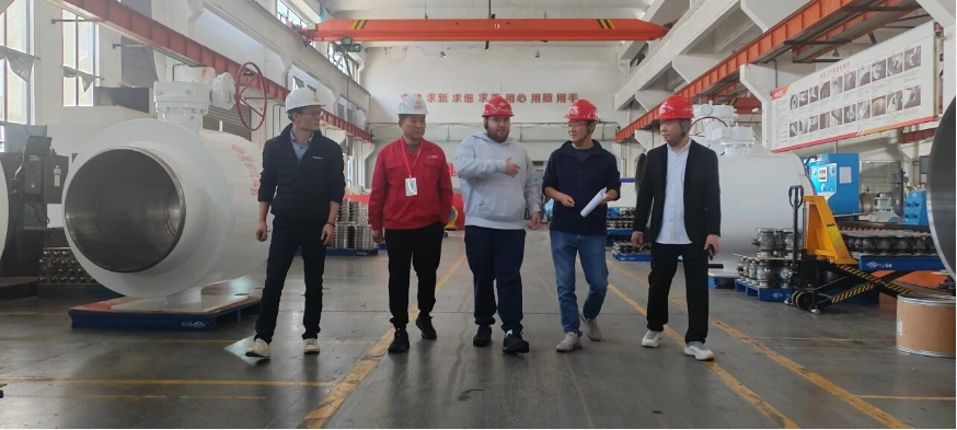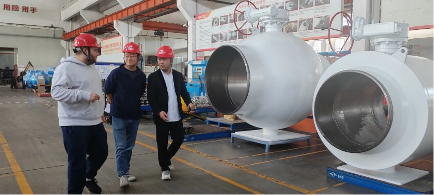 在诚功阀门常务副总万二华、销售副总陈双能等领导的陪同下,俄方客户深入公司的“智造”腹地。数字化加工中心的高效精准、全自动焊接产线的稳定可靠、以及精密检测环节的一丝不苟,都成为了双方技术语言交流的生动注脚。客户频频驻足,就他们最为关心的产品工艺细节与特定工况下的技术参数,与现场工程师展开了深入探讨。