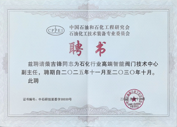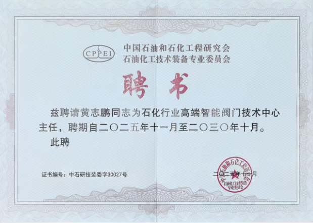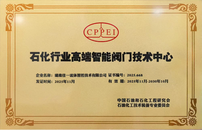 近日,湖南佳一流体智控技术有限公司正式获批“石化行业高端智能阀门技术中心”,这一认定由中国石油和石化工程研究会石油化工技术装备专业委员会授予。