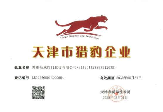 近日,博纳斯威成功获得天津市科学技术局颁发的“天津市猎豹企业”荣誉证书。