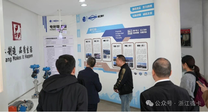 调研组首先走进德卡公司展厅,在公司总经理的引导下参观了本公司发展历程,成果陈列区与荣誉墙。从初创到行业深耕,从核心技术研发到市场拓展,老照片、产品样品与国家级高新技术企业证书等奖牌,直观展现德卡的积淀与实力。